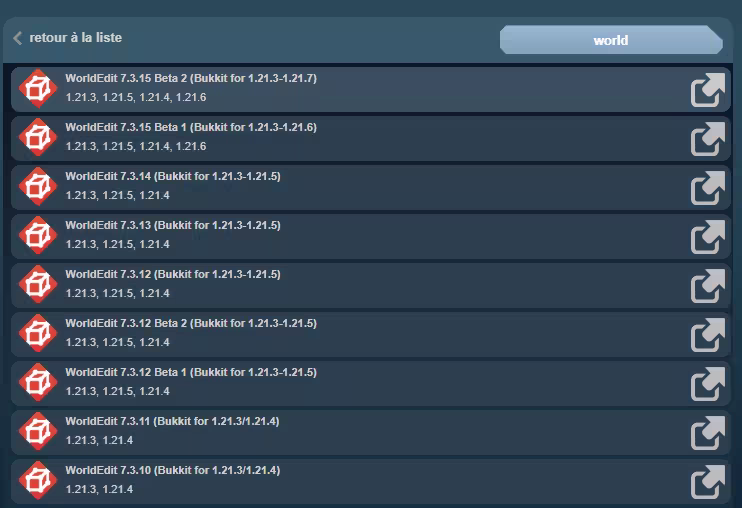 worldedit-bukkit-7.3.15-beta-02) possède ses propres boutons de contrôle.Pour garantir le bon fonctionnement de vos plugins, gardez en tête les éléments suivants :