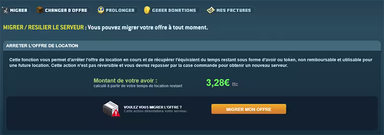 Vous pouvez ensuite utiliser cet avoir pour commander un nouveau serveur, vous devrez cependant migrer manuellement via FTP vos données.